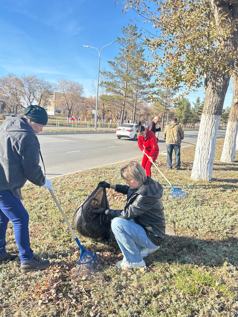 Даңқ аллеясында Ұлы Отан соғысына қатысушыларға арналған «Даңқ Обелискі» ескерткішінің аумағын санитарлық тазарту жұмыстары жүргізілді. Қоқыс пен құрғақ жапырақтар жинастырылып, ескерткішке апаратын жолдар сыпырылды.