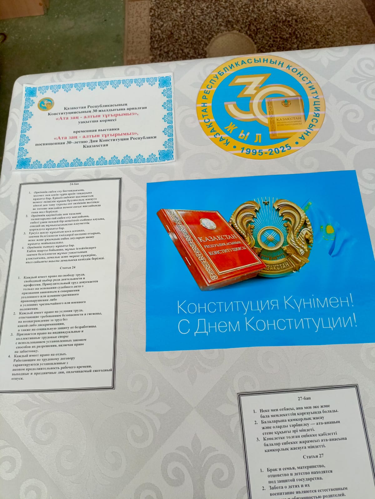 2024 жылғы 2 қыркүйекте Қостанай облысы әкімдігі мәдениет басқармасының «Рудный тарихи-өлкетану музейі» КММ ұжымы Қазақстан Республикасының Президенті Қасым-Жомарт Тоқаевтың Жолдауын тыңдады, онда Елбасы Қазақстанның алдағы кезеңге арналған саяси және әлеуметтік-экономикалық даму перспективаларын, елдің одан әрі ілгерілемелі қозғалысының стратегиялық бағыттарын баяндады. Мемлекет басшысы бірлік пен келісім – біздің басты жетістігіміз екенін атап өтті. Қ.Тоқаевтың Жолдауы еліміздің және азаматтық қоғамның одан әрі дамуына маңызды ынталандыру болып табылады. 2024 жылдың 29 тамызында "Жас бөбек" ЖШС балабақшасында ҚР Конституциясы күніне арналған "Мен – Қазақстан азаматымын" атты құқықтық сағат өтті. Іс-шараның мақсаты-балалардың Конституция туралы білімдерін кеңейту, "азамат" ұғымын қалыптастыру, Отанға және мемлекеттік рәміздерге құрметпен қарау ұғымын дамыту. Балалар үшін Конституция, ҚР Мемлекеттік рәміздері туралы толық ақпарат дайындалды, викторина өткізілді, онда балалар осы тақырып бойынша өздерінің эрудициясын ойын түрінде көрсете алды және алған білімдерін бекіте алды.