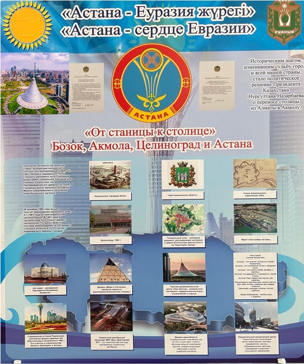 6 шілде - Қазақстан астанасы күні. Астана бүгінгі таңда Орталық Еуразияның інжу-маржаны және қазіргі Қазақстанның бренді болып табылады. Мереке құрметіне Рудный тарихи-өлкетану музейінде «От станицы к столице» уақытша көрмесі ашылды.